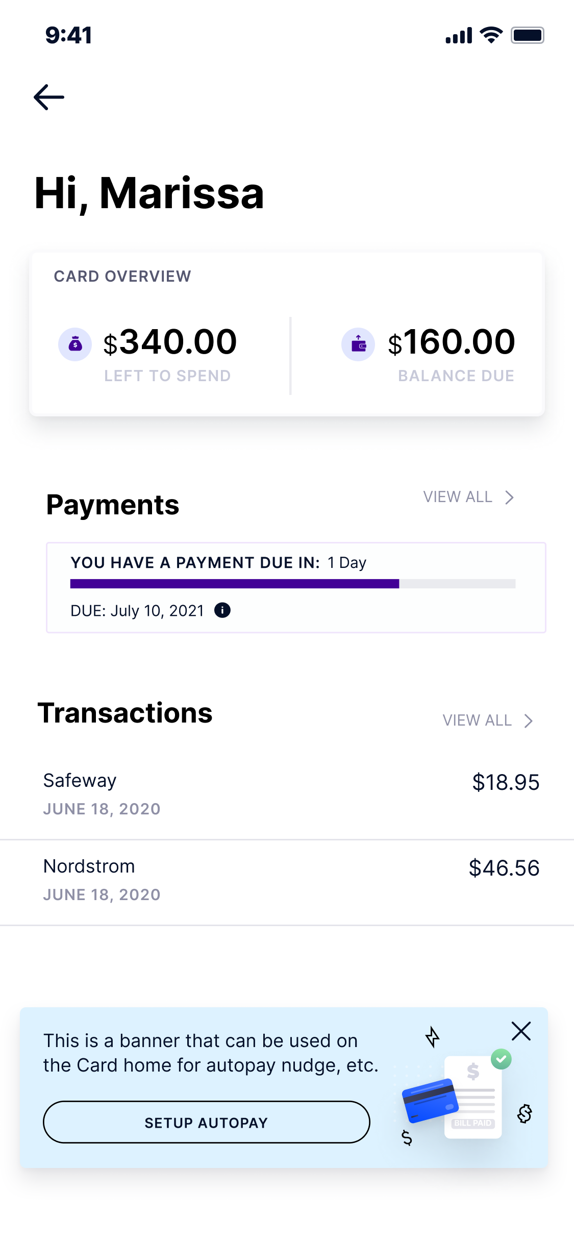 Launching the card meant we needed to update our navigation structure to include 2 products and soon 3 - we were working on the early stages of a cash advance product.