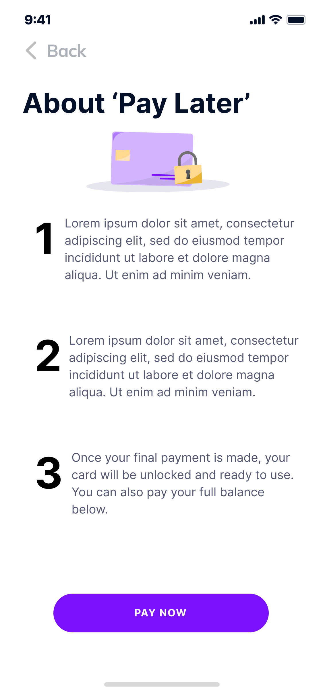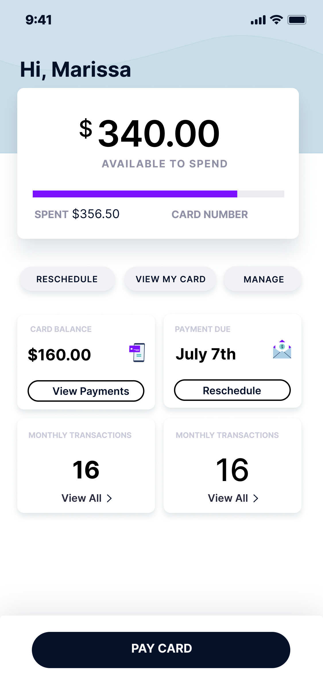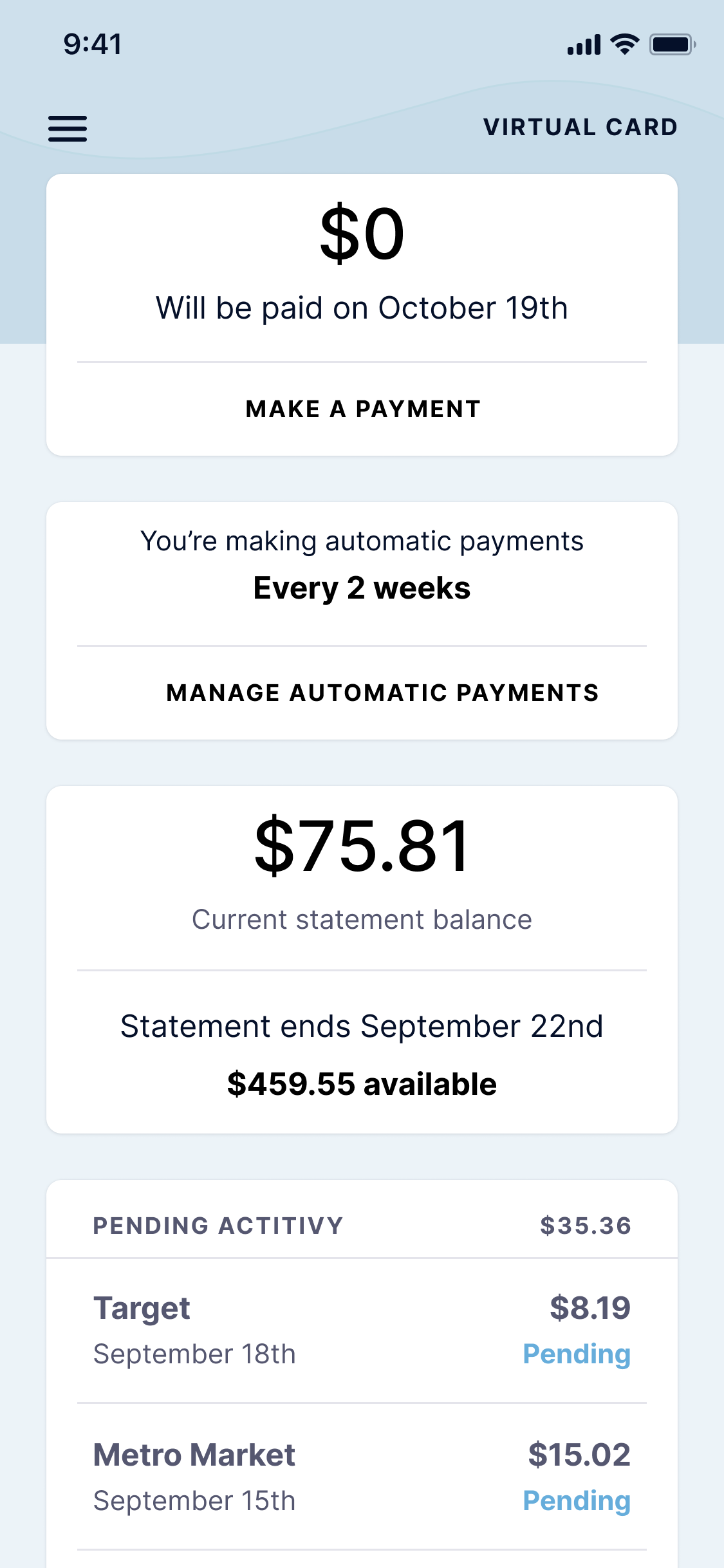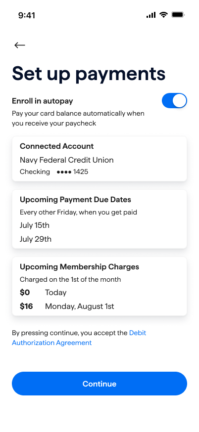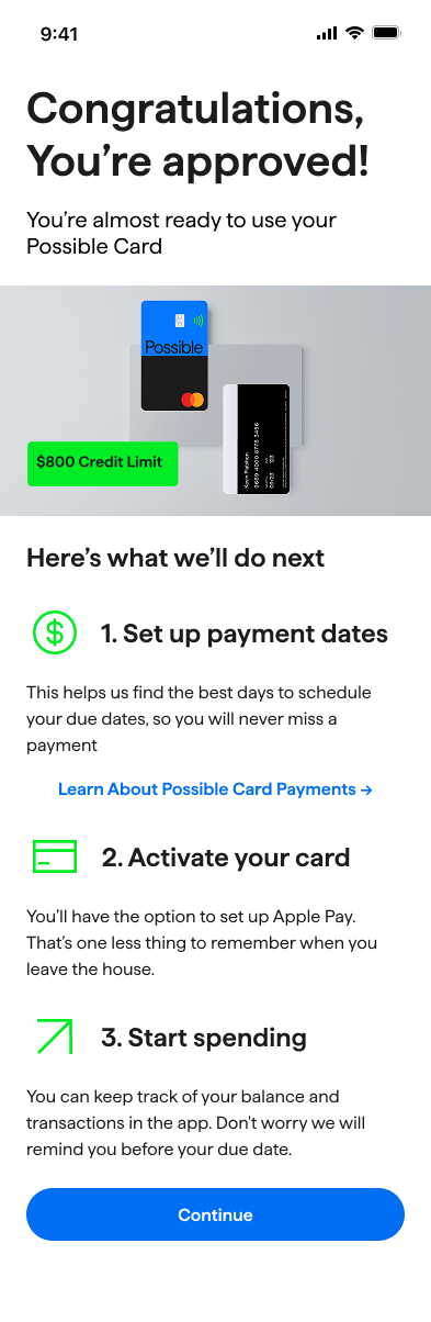 Redefining the application flow became a high priority task. This is where the customer is approved, sets up their payments, agrees to some legal terms and we mail the physical card.